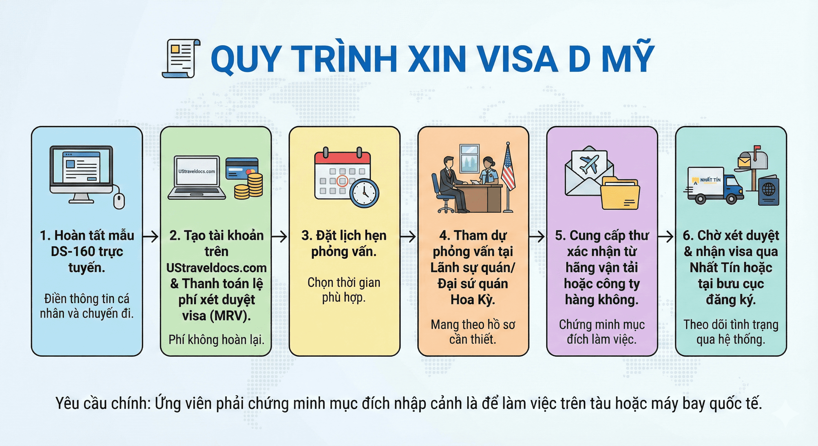 Có thể kết hợp visa C-1/D nếu cần quá cảnh qua Hoa Kỳ để lên chuyến bay khác.